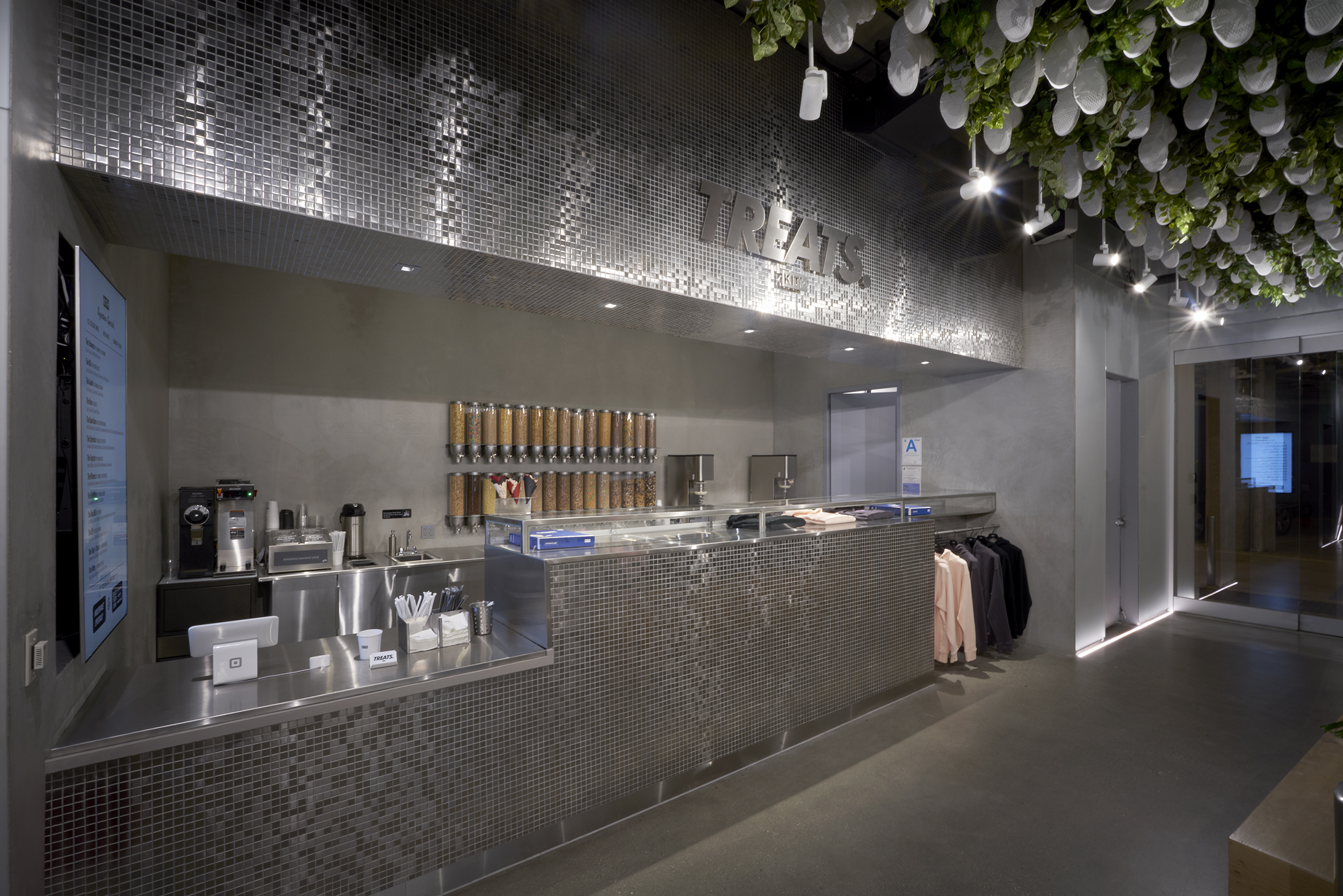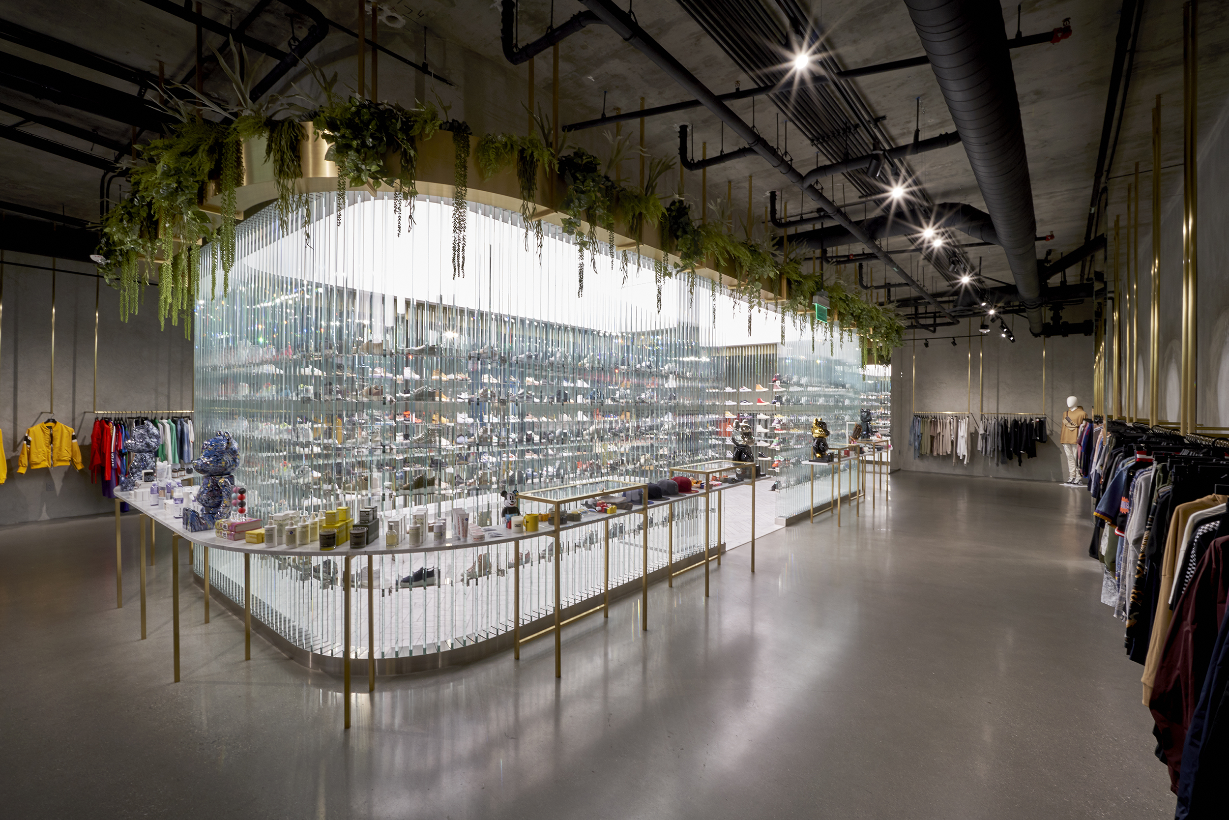 KITH’s Los Angeles flagship store – executed with design firm Snarkitecture – marks the brand’s arrival on Hollywood’s iconic Sunset Strip. Entered directly off of a subterranean parking level, the store’s main shopping area is characterized by industrial materials, including exposed concrete flooring and walls, blurring the line between parking deck and retail space.