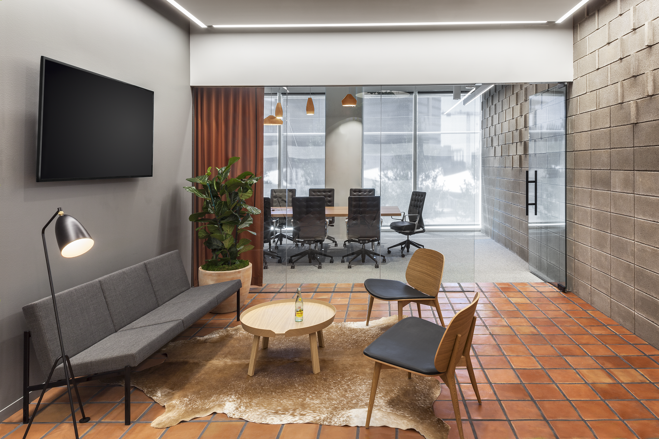 For Team One’s new Dallas office space, Terrain was asked to create a high-performance, people-focused workspace inspired by the agency’s previous locations. Working within a conventional high-rise office building with relatively constricted ceiling height, we employed a scheme that allowed light to penetrate deeply into the space. The space was humanized with plant filled spaces, vertical gardens and natural materials like wood and terracotta.