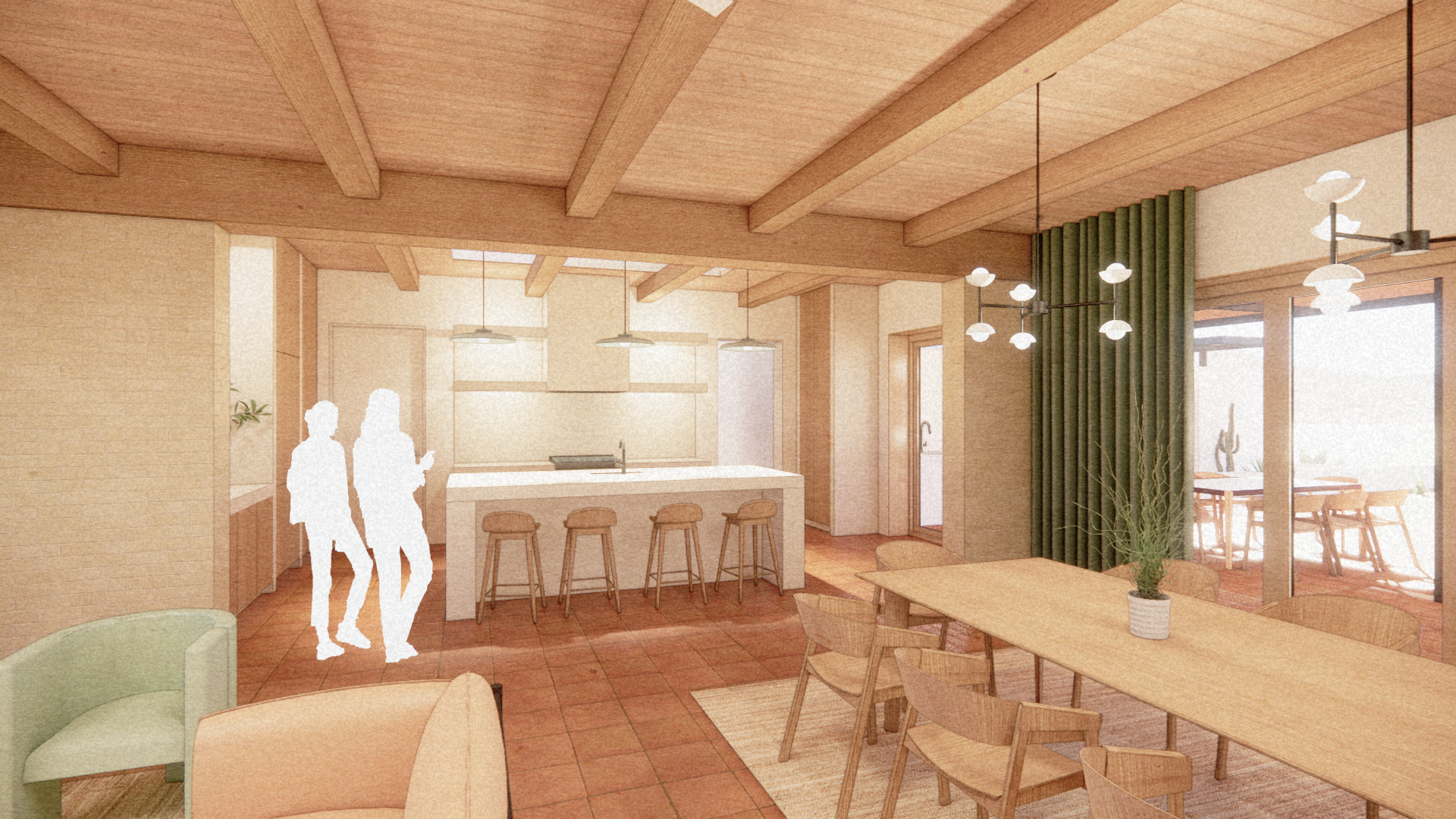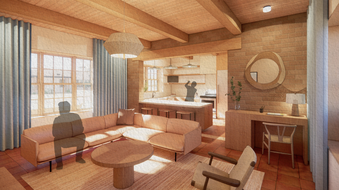 Approached by a couple with a deep commitment to sustainability to age-in-place and host their visiting family, this home was constructed of compressed earth block (CEB) construction fabricated on-site using locally sourced materials.